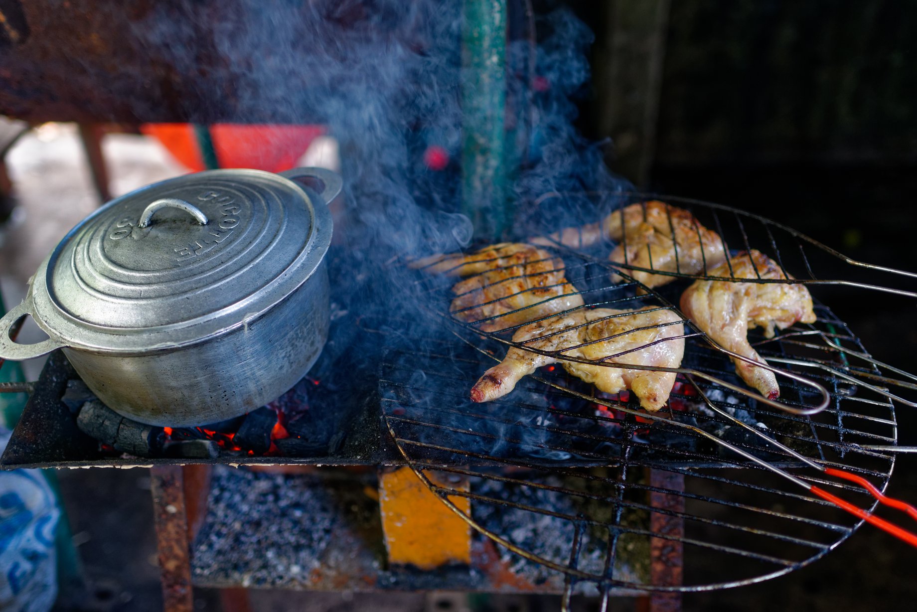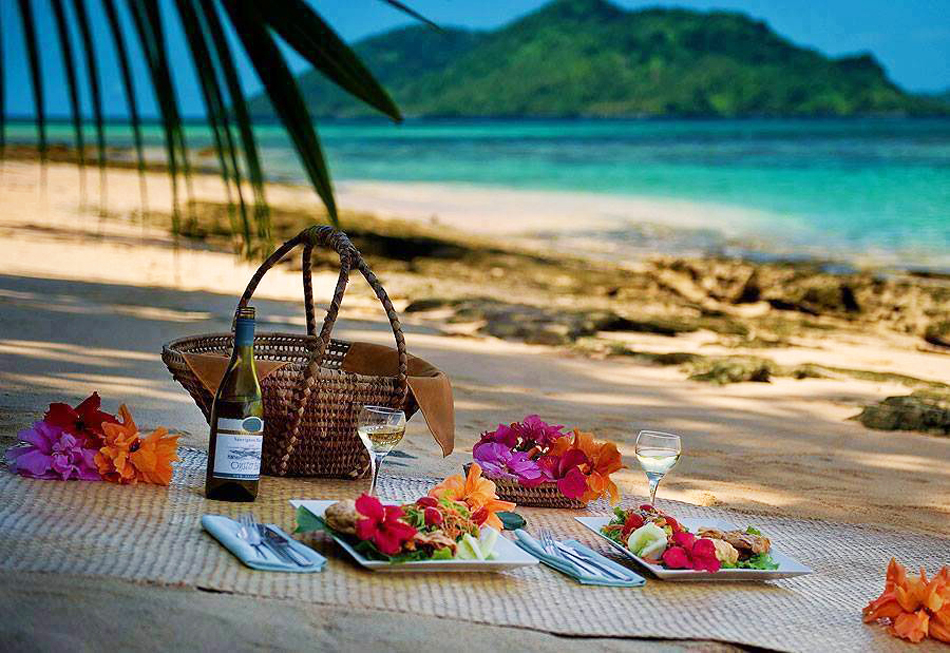 Déjeuner sur la plage : poisson frais et langouste selon la saison.